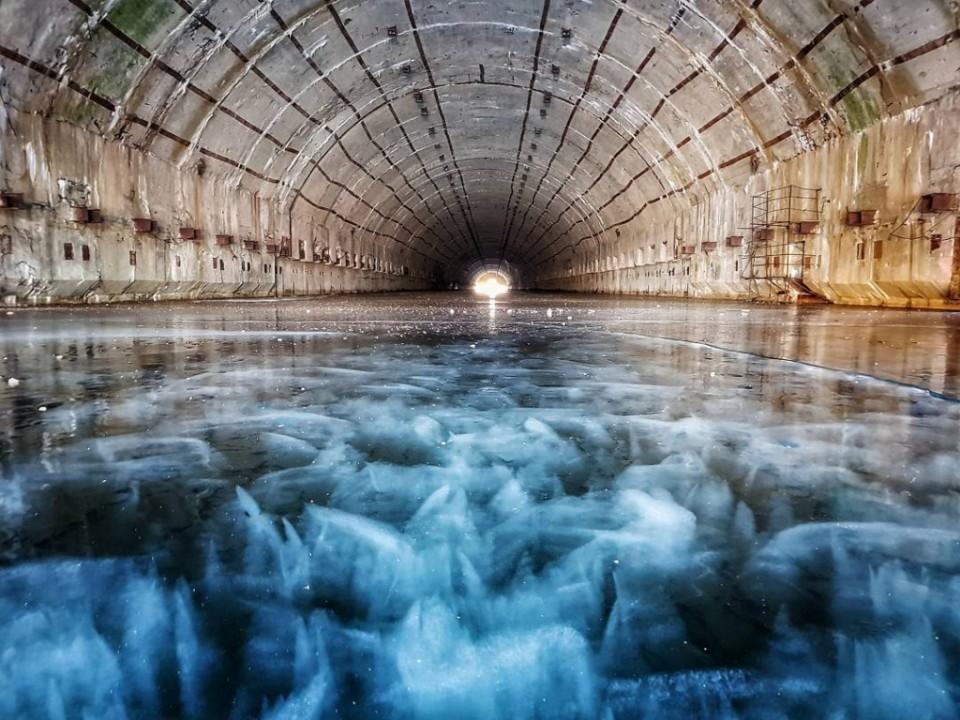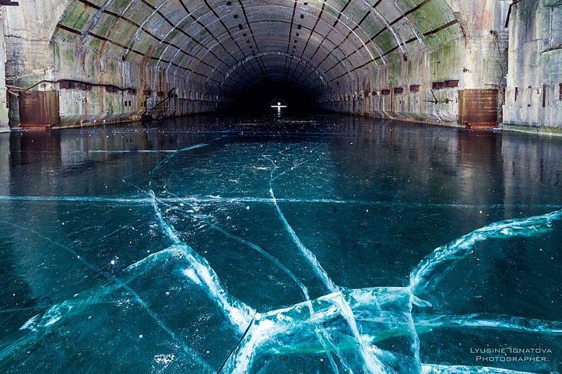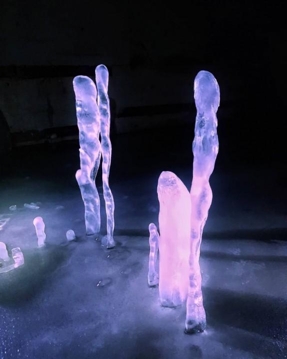 Фото: Ледяные сталагмиты и сталактиты в подземном бункере секретного объекта #6 (Убежище подводных лодок), Максим Абдразаков.
