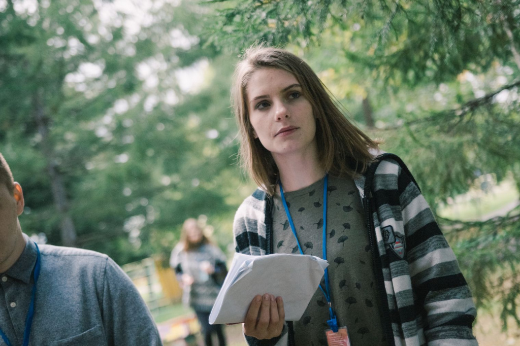 - На мастерской было написано больше дюжины сценариев, - рассказывает Рома Овсейчук, главный редактор фестиваля «Точка возврата», - из которых мы выбрали 6: 3 на этот кинолагерь, и 3 на следующий, через неделю мы едем под Уссурийск. То есть это тоже истории написаны любителями, они просто придуманные, взятые из головы. Это не экранизации литературных произведений, не какие-то известные пьесы. Это три истории, одна «Терапия» (режиссёр Наташа Курнаева) – это психологический триллер, про супружескую пару, которая проходит очень необычную терапию, но сначала они вообще думают, что над ними издевается маньяк. Вторая история называется «Победа» (режисссёр Александр Фролов) - это такая экстремально «шукшинская», если можно так сказать, тема о деревенском поэте – алкоголике по совместительству, который с помощью поэзии добивается от продавщицы местного сельпо бутылки взаймы. И третья история – это антиутопия, смесь мотивов сериала «Черное зеркало» и Оруэлла, она так и называется «Оруэлл уже сегодня» (режиссёр Альбина Черных), то есть это фантазия на тему до чего может довести пенсионная реформа. Что у них получится в итоге – увидим в дни фестиваля!