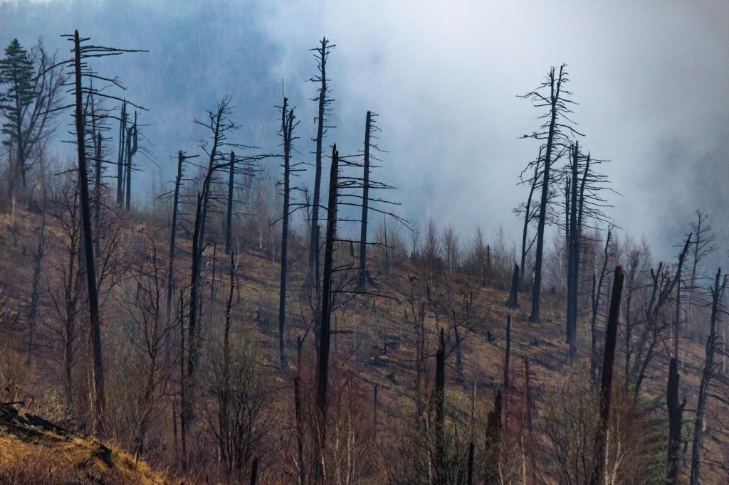 Наскоро позавтракав и посовещавшись, решили подниматься на гору, подножие которой находилось примерно в километре от кордона. Гора ощетинилась обугленными деревьями, стоящими, словно истуканы. Недавно здесь бушевал лесной пожар.