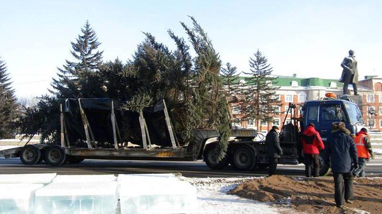 В Еврейской автономной области ёлка-2018 не такая, как у всех: от макушки до условной «талии» она натуральная, ниже – каркас. 10 декабря таёжное дерево доставили на площадь Ленина. Для этого инспекторам даже пришлось ненадолго перекрыть движение на проспекте 60-летия СССР.