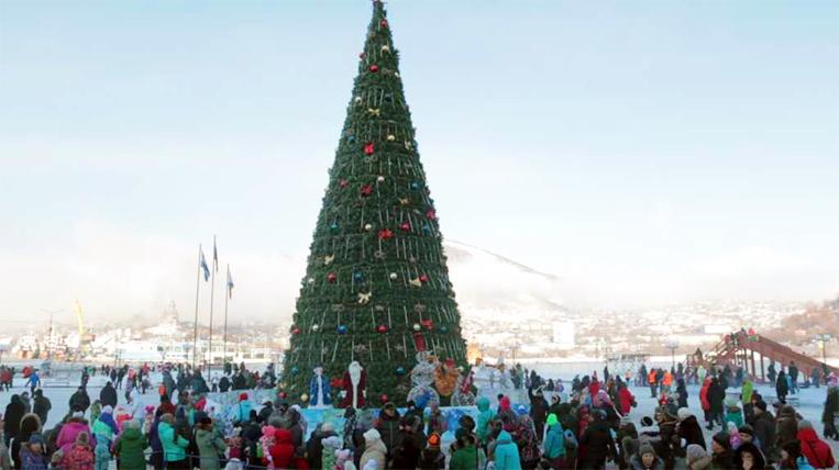 Столица Камчатки встречает 2018-й год с новой 18-метровой ёлкой. Каркас для неё изготовили местные мастера. Было закуплено 1800 искусственных веток, а также новогодние шары различной формы, цвета и диаметра. Сверление отверстий и сварка заняли много времени, все детали шли отдельно друг от друга, на болтовом соединении.