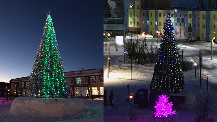 В столице Чукотского автономного округа - ёлка на вечной мерзлоте и в полярной ночи. Рост зелёной красавицы ниже среднего, 10 метров.