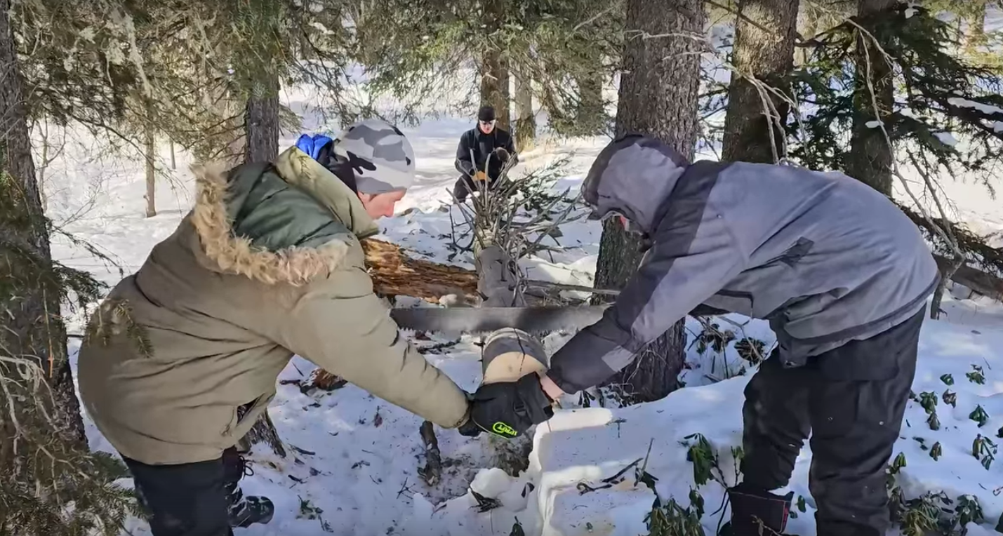 Двойной согревающий эффект: сначала тепло пока пилишь дрова, потом костер не даст замерзнуть. фото из личного архива Михаила Непогодина