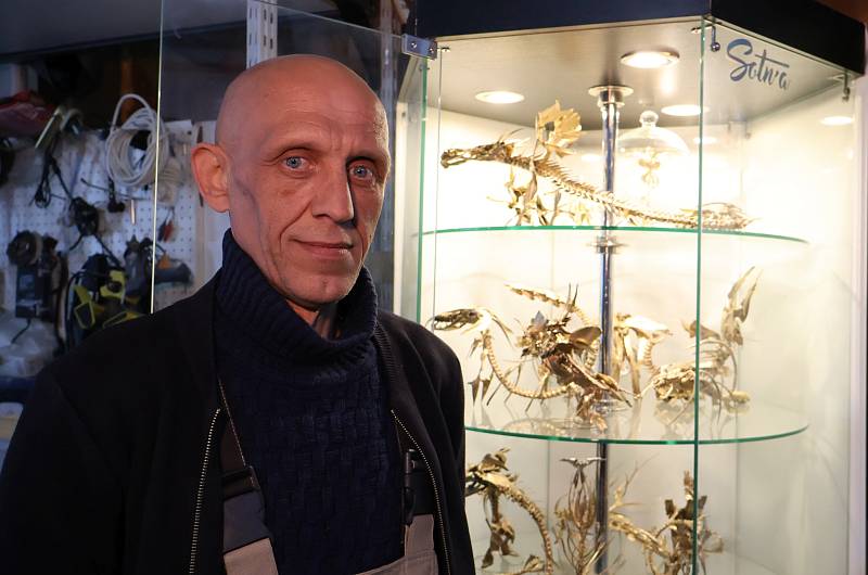 — Чистая импровизация. Я вообще без эскизов работаю — и в металле, и здесь. Сначала подготавливаю материал: варю рыбу, как уху, чтобы всё разварилось. Потом разбираю, чищу, сушу. Зубной щёткой вычищаю, обезжириваю — у меня своя технология. А дальше начинается самое интересное. У меня дома тысячи этих костей, они лежат в контейнерах. Я их перебираю, подбираю, прикладываю. Кто-то говорит, что это похоже на рыбье «Лего». И вот из этого хаоса вдруг начинает складываться форма.