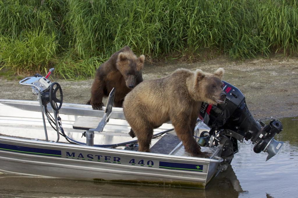 Фото: Медвежата в лодке инспекторов. Michel Roggo