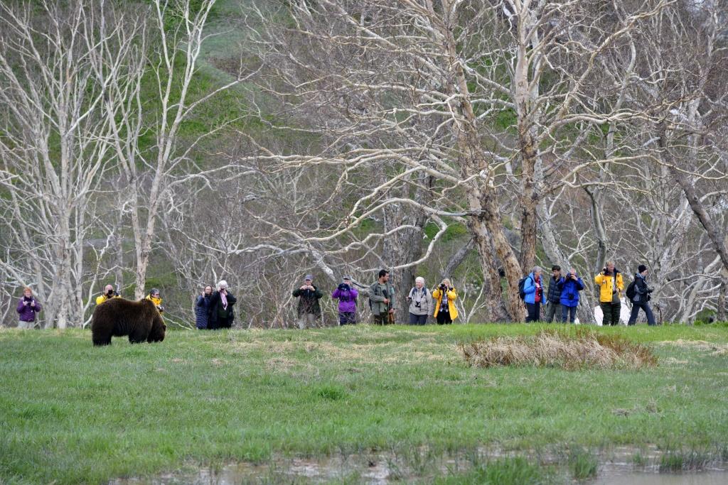 – Можно, но только один раз. Последний. Потому что это опасное животное, и мы не подпускаем к медведям на расстояние ближе 50 м, за этим строго следят сотрудники службы охраны. Медведь может захотеть и встать посередине группы, между людьми. Поэтому, ведя туристов, инспекторы контролируют группу спереди и сзади, чтобы все были в безопасности. Сопровождающий должен предугадывать намерения зверя по его поведению – издаваемым звукам, определённым позам. Важны профессионализм гидов и инспекторов, чтобы организовать экскурсию и самих туристов. Бывают неуправляемые люди, группу нужно держать постоянно вместе, чтобы она не растягивалась.