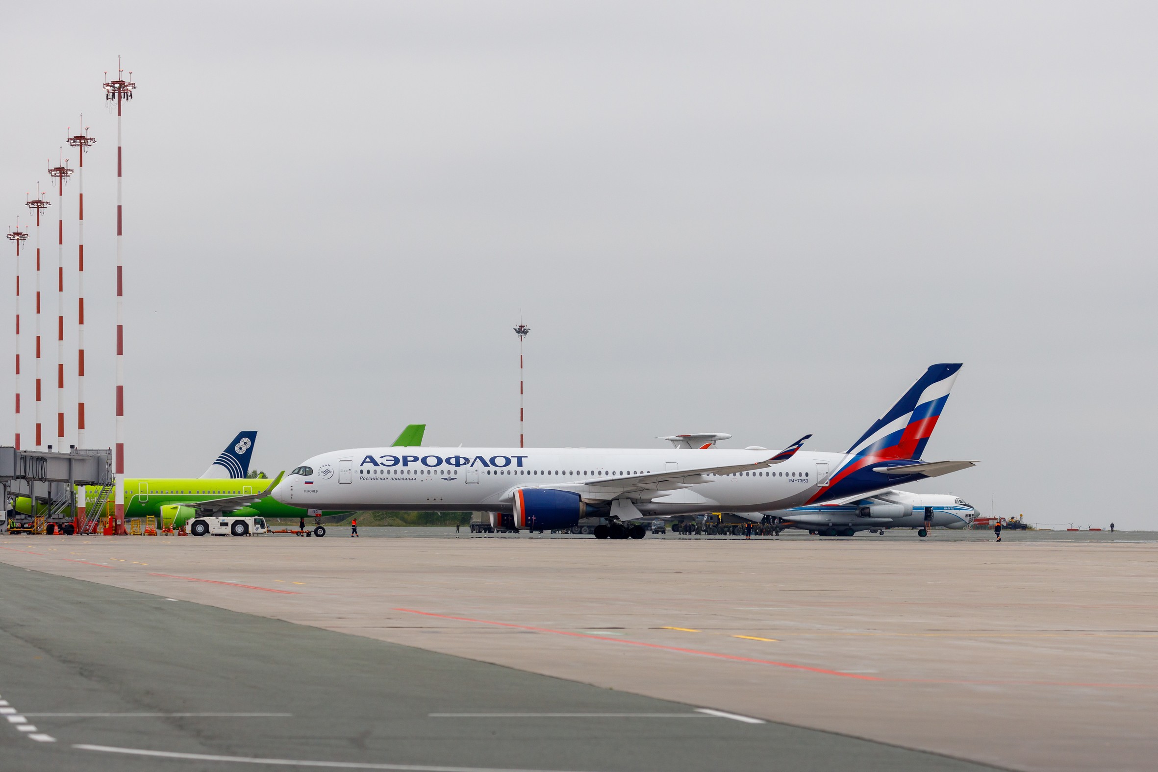 Airbus A350-900 RA-73153 в аэропорту Владивостока. фото: пресс-служба Международного аэропорта Владивосток