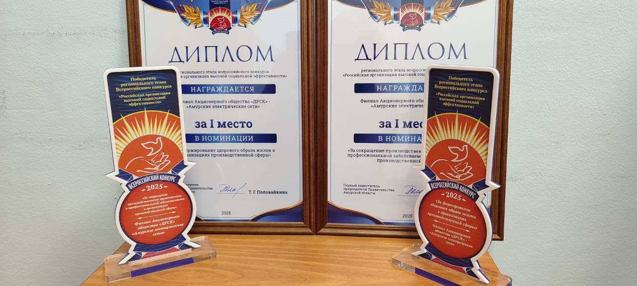 Завершился региональный этап Всероссийского конкурса под названием «Российская организация высокой социальной эффективности – 2025». По его итогам филиал АО «ДРСК» «Амурские электрические сети» (входит в Группу ПАО «РусГидро») занял первое место в двух номинациях. Первая – «За сокращение производственного травматизма и профессиональной заболеваемости в организациях производственной сферы», вторая – «За формирование здорового образа жизни в организациях производственной сферы».