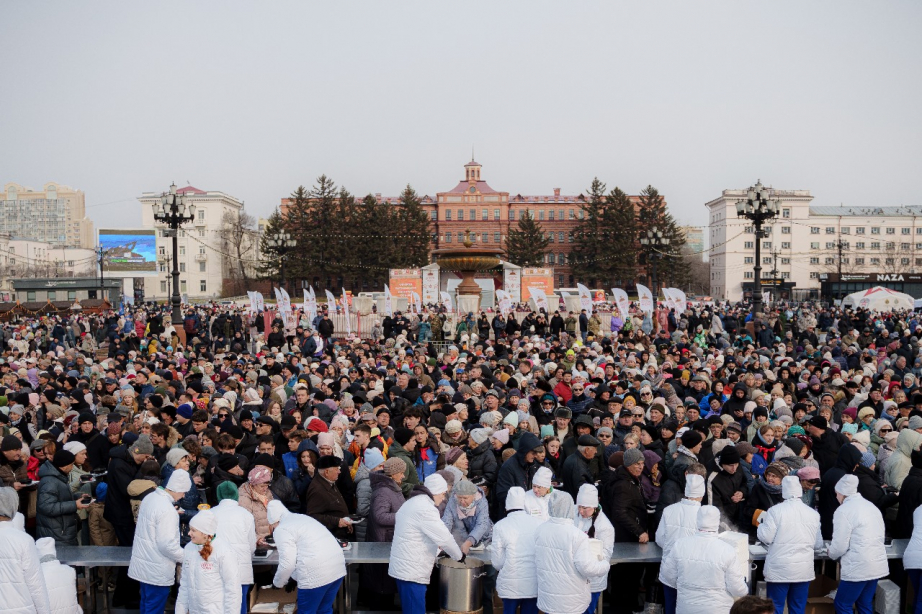 В часть Дня народного единства в Хабаровске приготовили Царскую уху. На центральной площади города – площади им. Ленина жителям и гостям города бесплатно раздавали только что приготовленное горячее наваристое блюдо.