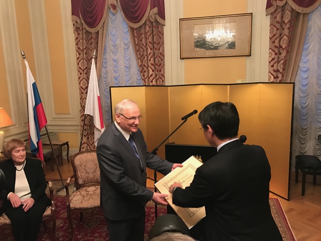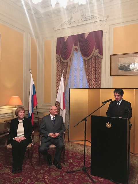 В торжественной обстановке в резиденции посла Японии был награжден выдающийся советский и российский журналист, активный общественный деятель, который сделал гигантский вклад в развитие отношений между Японией и Россией - Борис Львович Резник.