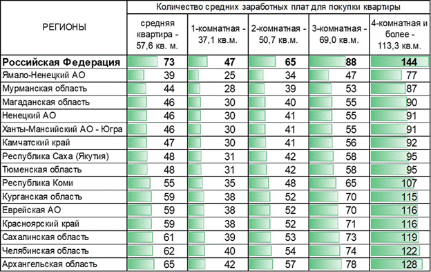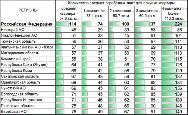 Жители таких регионов, как Магаданская область, Камчатский край, Якутия, Еврейская автономная область и Сахалин, могут приобрести типичную квартиру на вторичном рынке за 45-60 средних заработных плат.