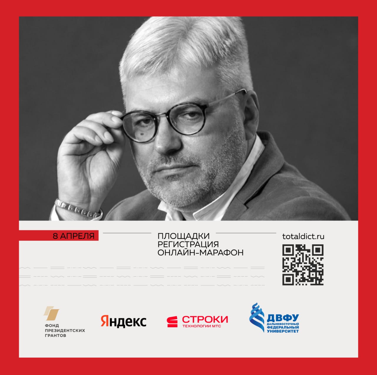 «Тотальный диктант» пройдет 8 апреля в 15 часов по местному времени. На площадке ДВФУ также будет организована онлайн-трансляция для тех, кто будет писать диктант из других регионов Дальнего Востока, а также из Кореи, Японии, Китая, стран Юго-Восточной Азии, Австралии и Новой Зеландии. После Евгений Водолазкин проведет творческую встречу с читателями.