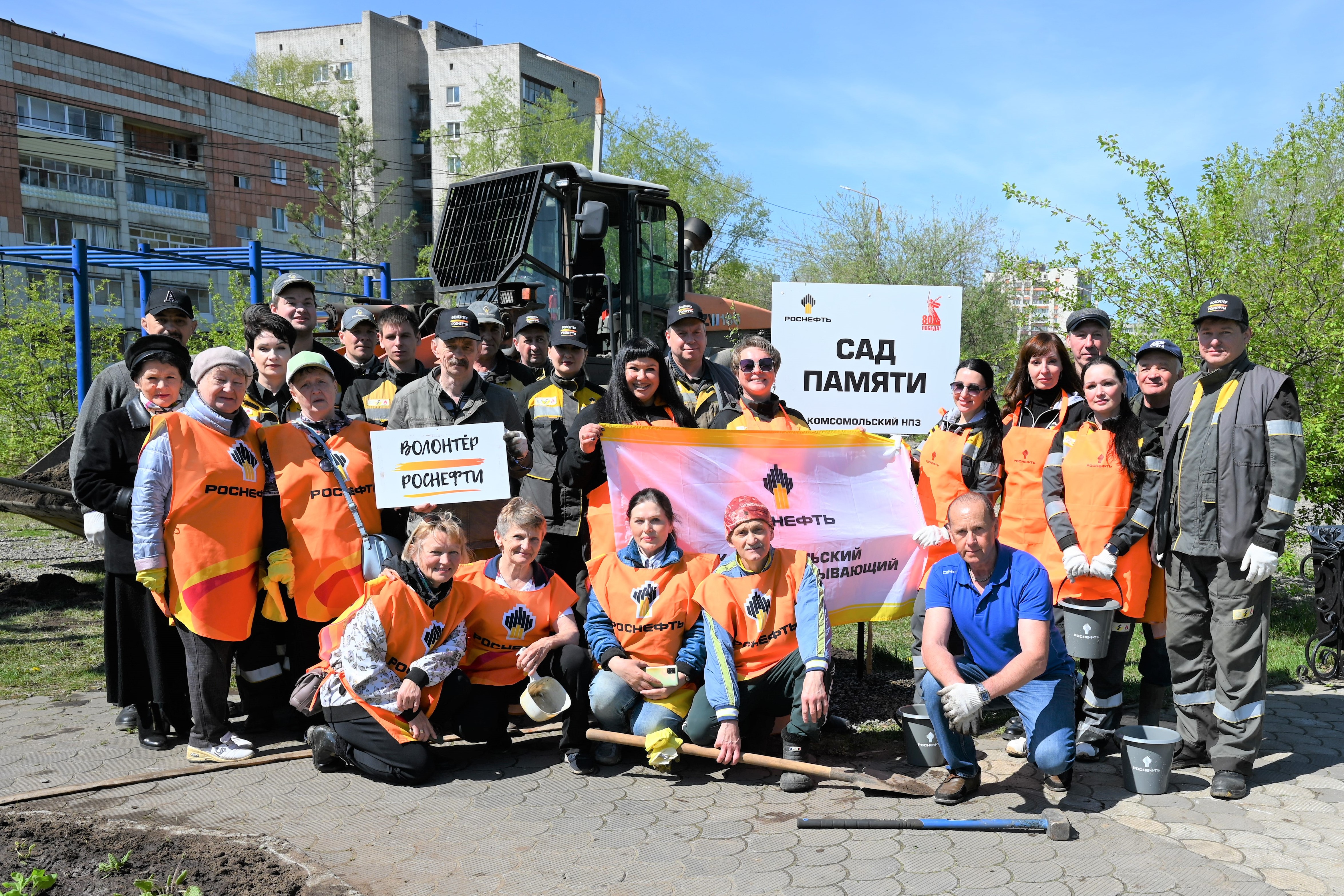 В прогулочной зоне на перекрестке улиц Ленинградской и Лазо сотрудники КНПЗ высадили деревья в рамках всероссийской акции «Сад Памяти». Мероприятие, посвященное юбилею Великой Победы, поддержали ветераны, молодежь и экологи предприятия.
