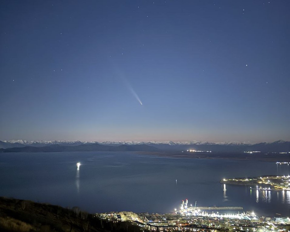 На Камчатке запечатлели на снимке и видео самую яркую комету тысячелетия – Цзыцзиньшань-АТЛАС. С сопки Мишенной в Петропавловске-Камчатском ее видо невооруженным взглядом.