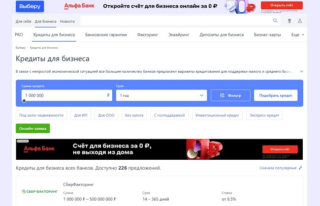 Для того чтобы составить представление об актуальных предложениях, совершенно необязательно бегать по банкам или даже по их официальным сайтам. Всю интересующую информацию можно получить в одном месте, например, на маркетплейсе Выберу.ру. Онлайн-площадка предоставляет данные по десяткам продуктов с кардинальным различием в ряде характеристик. Например, здесь легко подобрать экспресс кредит для юридических лиц, который выдается на упрощенных условиях и вполне способен покрыть возникшие потребности в деньгах у небольшого или среднего предприятия.