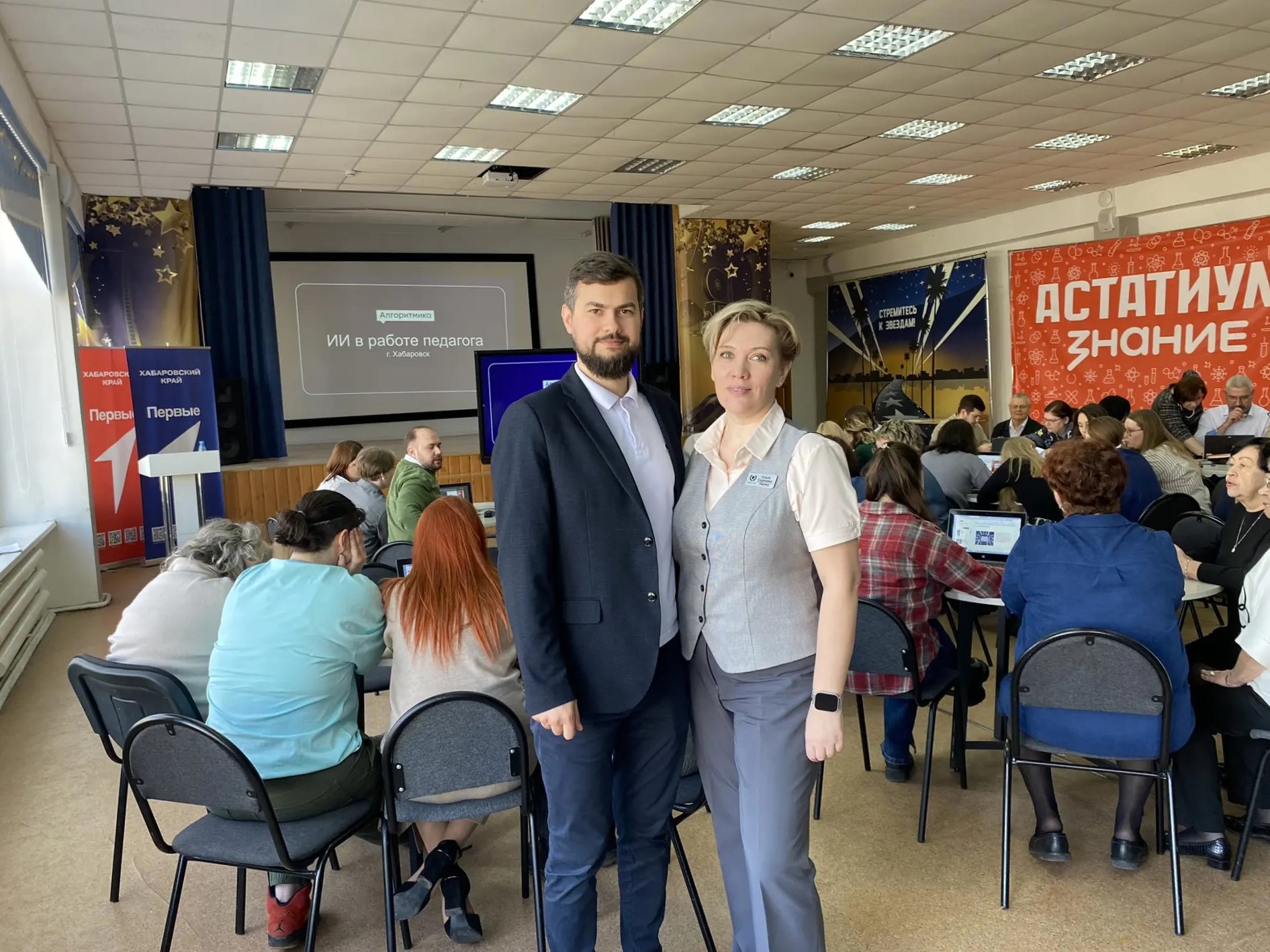 Победа Богачевой принесла хабаровской школе ценный подарок — «Цифровую образовательную прокачку» для всего коллектива. Обучение провел эксперт по искусственному интеллекту и робототехнике, руководитель проекта «ИТ-класс в московской школе» и методист международной школы программирования и математики «Алгоритмика» Дмитрий Шепилов. Мероприятие прошло при поддержке Сбера.