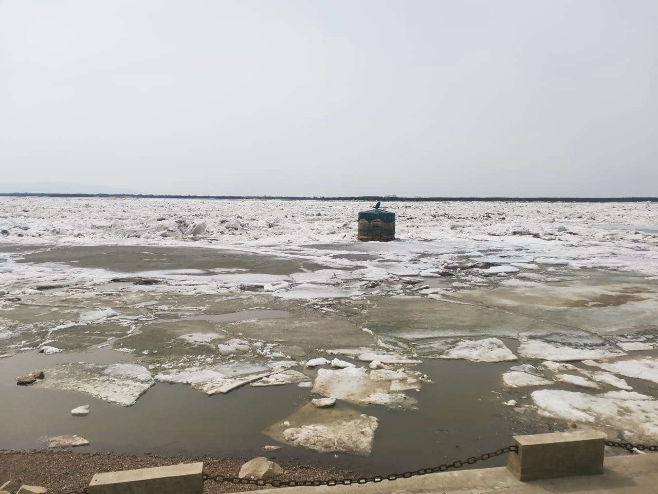 Между тем в 2021 году во время ледохода глыбы льда сломали ограждение на набережной Амура в Хабаровске, взгромоздившись на пешеходную дорожку.