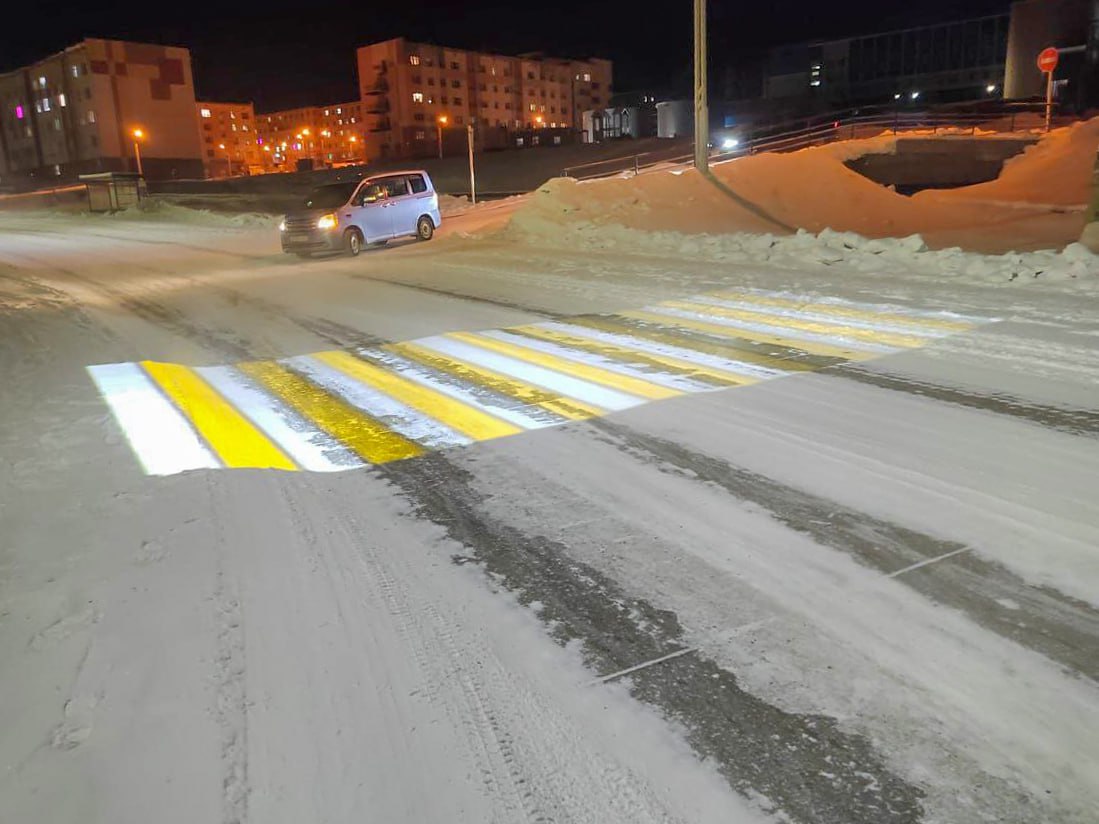 В Чукотском АО для безопасности автомобилистов и пешеходов обустраивают проекционных пешеходных переходов. Так, изображение желто-белых полос уже появилось на пяти участниках дорожного движения в Певеке.