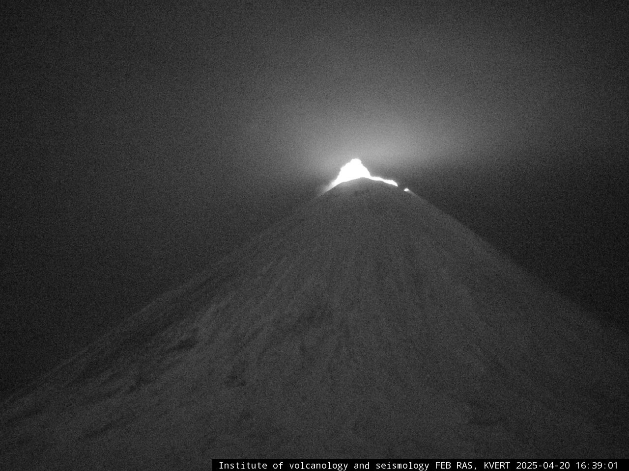 Кроме того, накануне, 20 апреля около 23 часов по местному времени началось эксплозивное извержение его «соседа» вулкана Ключевской. На снимках с камеры, установленной на сейсмической станции, ученые заметили фонтанирование лавы в кратере. Свечение в вершинном кратере вулкана Ключевской длилось несколько минут, сообщили в Камчатском филиале ФГБУН ФИЦ «Единая геофизическая служба Российской академии наук». Для этого вулкана действует желтый авиационный цветовой код.