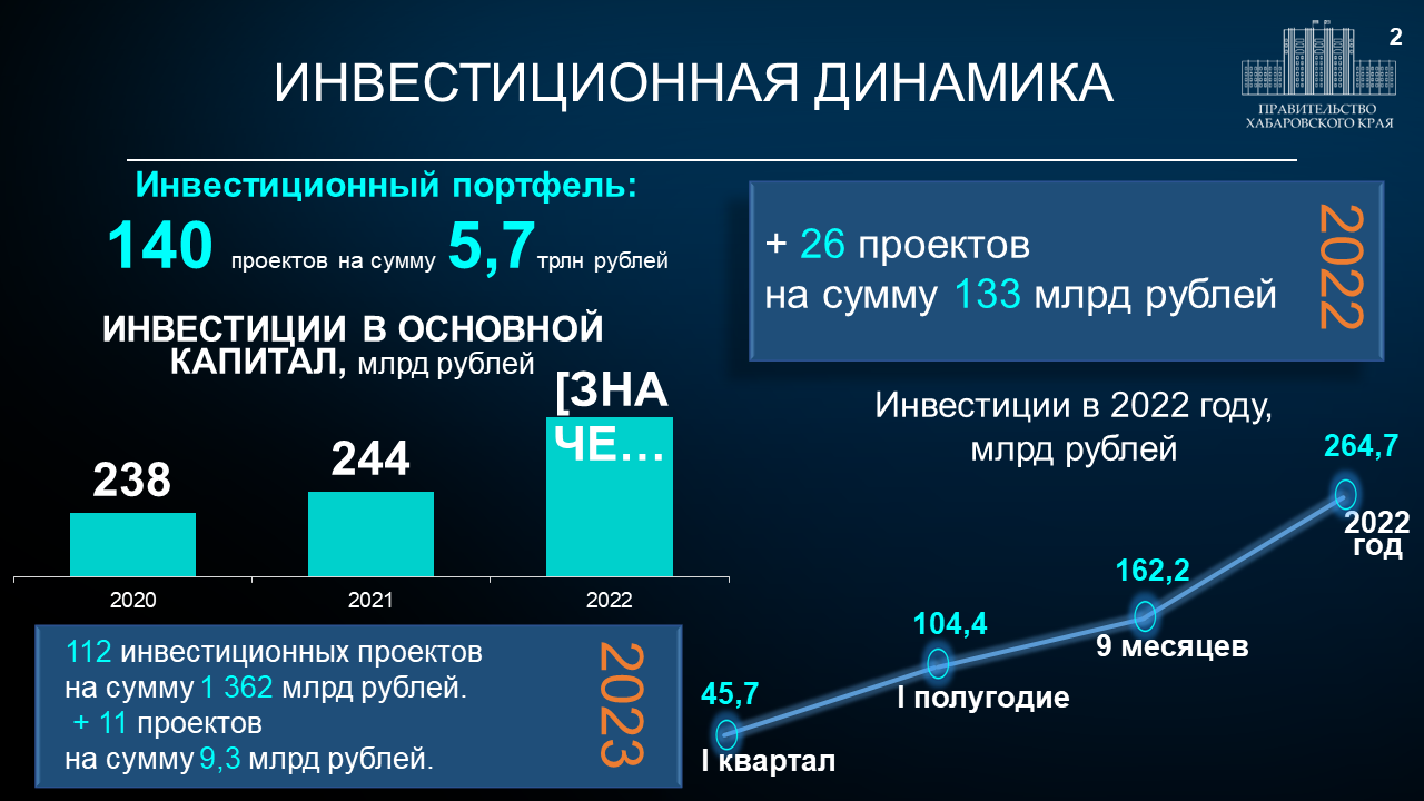 Как пишет ТАСС, в прошлом году регионе началась реализация новых проектов на 47 млрд рублей, за неполное полугодие этого года – уже на 100 млрд рублей. Чаще всего инвесторы вкладываются в культуру, образование, науку, спорт, туризм и рекреацию. Также большой потенциал имеют приграничные территории.