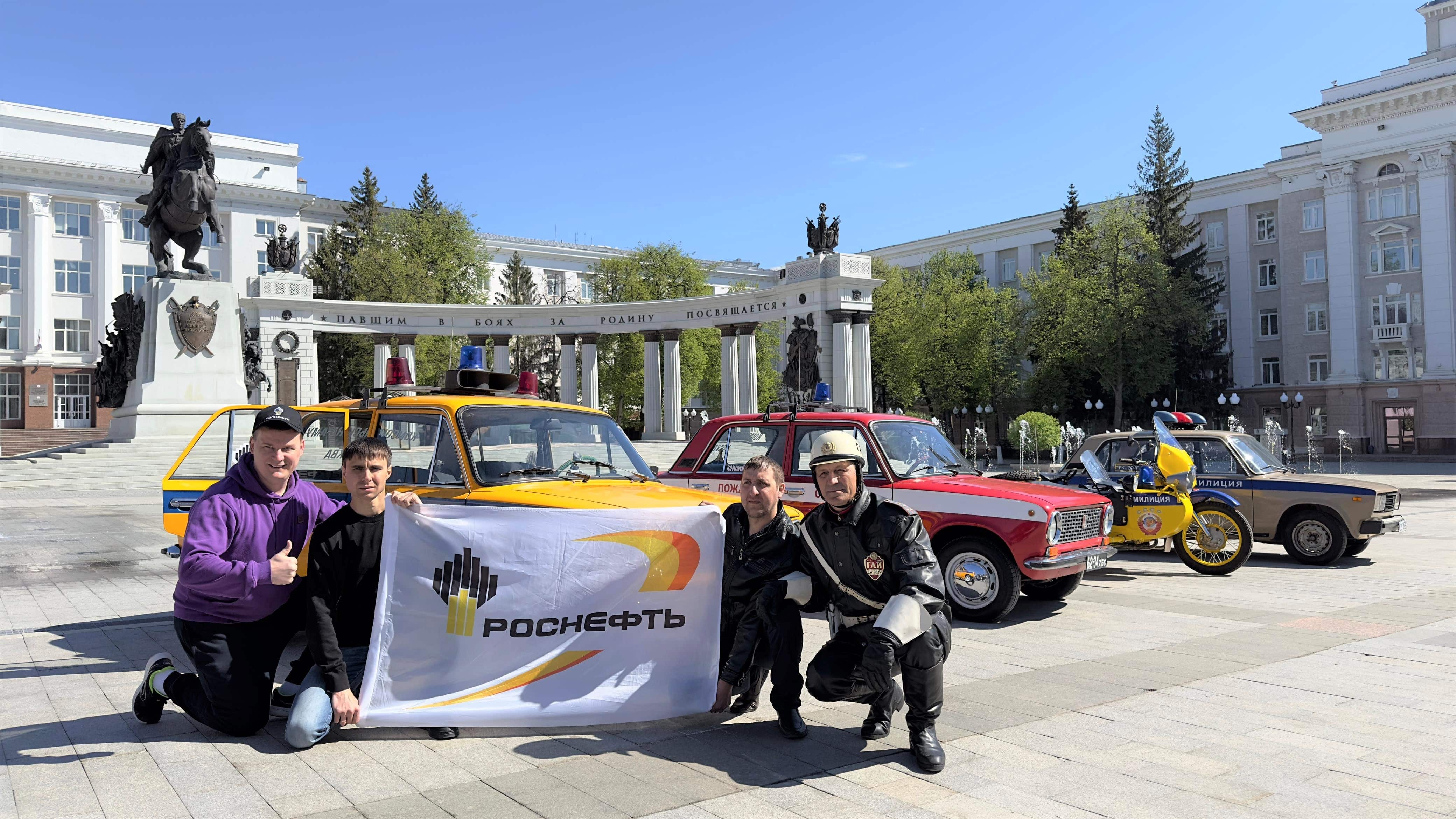 При поддержке Комсомольского НПЗ (входит в нефтеперерабатывающий комплект НК «Роснефть») работники дочернего предприятия проехали на ретро автомобилях через всю страну. Уникальное мероприятие приурочили к 79-й годовщине Великой Победы.