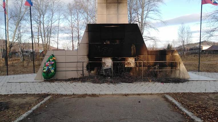 В Амурской области в поселке Ерофей Павлович горел памятник воинам Великой Отечественной войны. Как выяснили полицейские, причиной стали игры подростков с петардами.