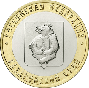 Монету номиналом 10 рублей, посвященную Хабаровскому краю, выпустил Банк России. Монета из недрагоценных металлов, ее тираж – один миллион штук.