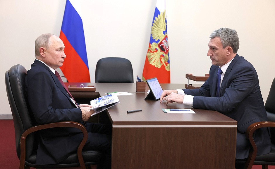 Президент РФ Владимир Путин провел рабочую встречу с губернатором Амурской области Василием Орловым, в ходе которой глава региона рассказал о реализуемых в области проектах и социально-эконмическом развитии.