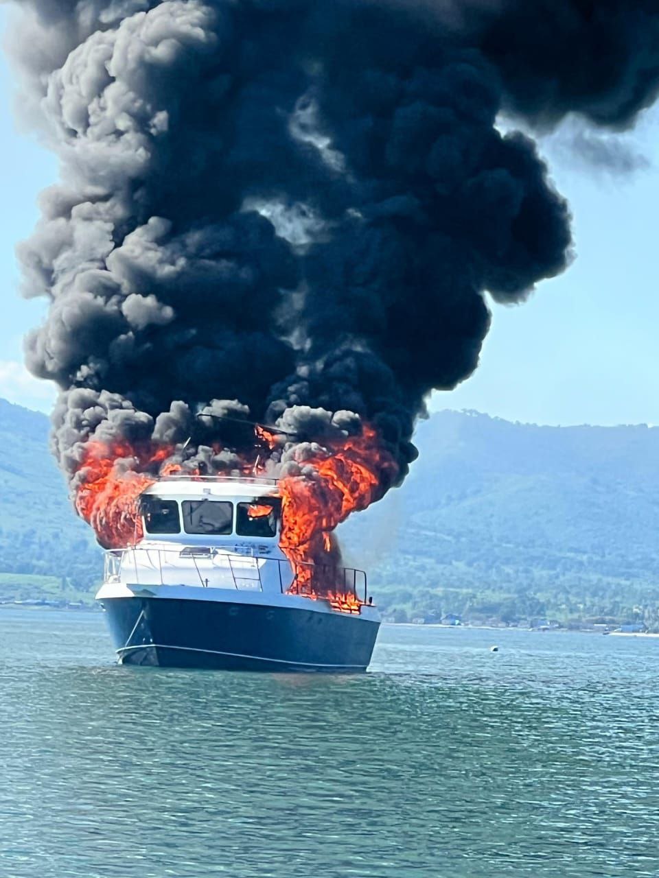 Когда вспыхнуло пламя люди прыгали в воду, никто не пострадал. Судно ушло ко дну.