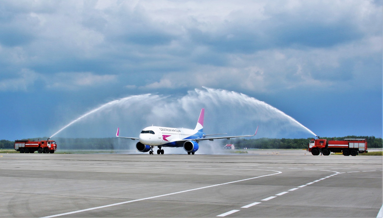 По традиции первый рейс по этому направлению, который состоялся в пятницу, 25 июля, встретили водной аркой.