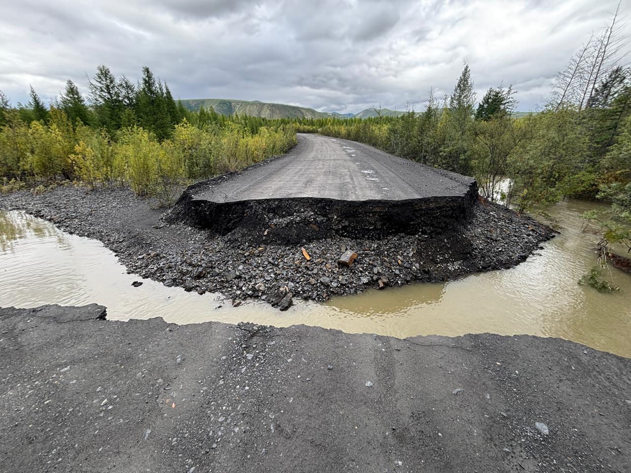 Ранее сообщалось, что людей, застрявших в пробке рядом с подтопленным участком трассы в Магаданской области, эвакуировали вертолетом в Магадан. Движение полностью закрыто на федеральной трассе Якутск-Магадан (Р-504 «Колыма») с 18 августа из-за ливней. В Магаданской области действует режим ЧС регионального характера.