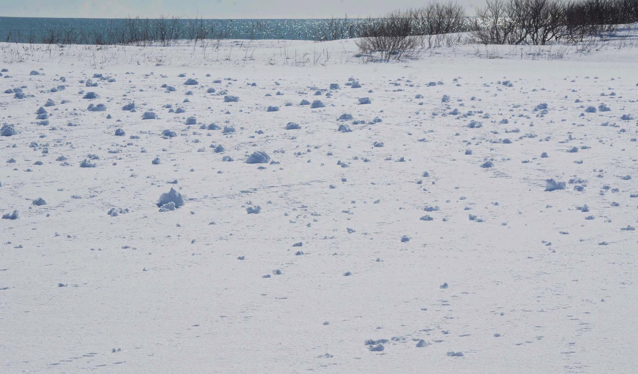 Необычные снежные комы образовались на поверхности озера Глухого. Для того, чтобы они сформировались, температура в приземном слое должна быть чуть выше 0 °C. Кроме того, необходима высокая влажность, которая не позволит снегу примерзать к поверхности льда.