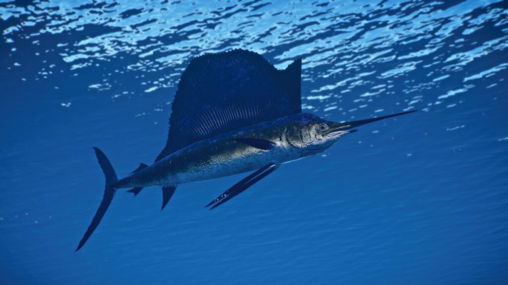 У рыбы-парусника высокий и длинный первый спинной плавник, а также длинное рыло, похожее на меч. Взрослые особи достигают 3,5 метров в длину и имеют около 100 кг веса.