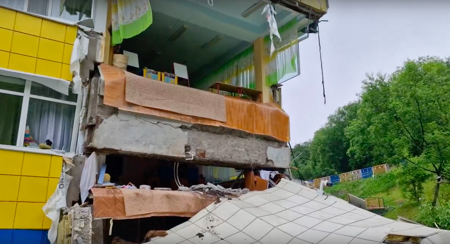 разрушенный детский сад на Камчатке скриншот видео, источник: Сергей Лебедев
