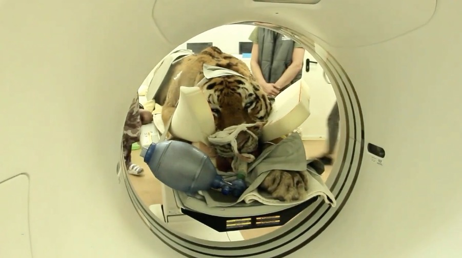 Амурский тигр из Приморья прошел процедуру компьютерной томографии. Самец находится в очень тяжелом состоянии. Точный возраст животного неизвестен, но по внешним признакам ему от трех до пяти лет. КТ специалисты выполнили для того, чтобы понять есть ли возможность сделать операцию. Об этом сообщили в пресс-службе МРОО «Центр «Тигр» ».