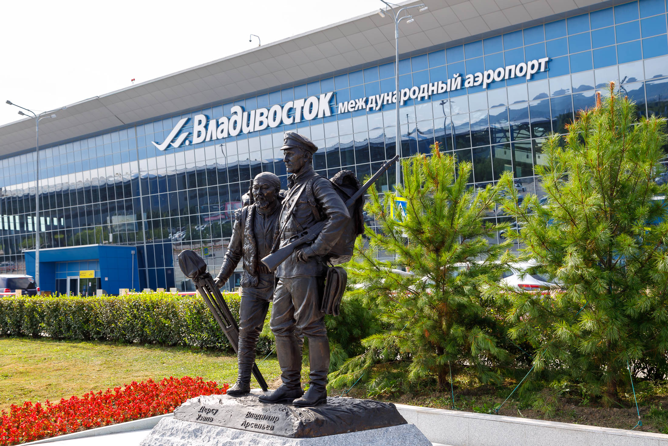 Скульптурную композицию установили на привокзальной площади Международного аэропорта Владивосток. Она посвящена дружбе писателя и исследователя Дальнего Востока Владимира Арсеньева с нанайским охотником Дерсу Узала.