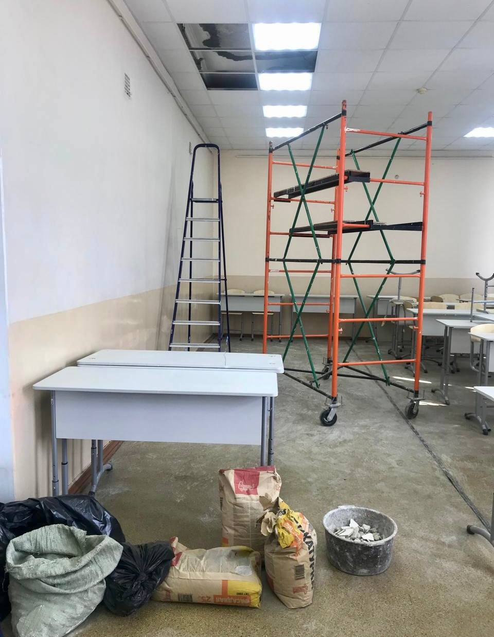 Как сообщает пресс-служба прокуратуры Хабаровского края, по предварительным данным рухнула часть подвесного потолка. Отмечается, что в момент инцидента занятия в кабинете не проводились и студентов внутри не было. Удар был такой силы, что парта прогнулась.