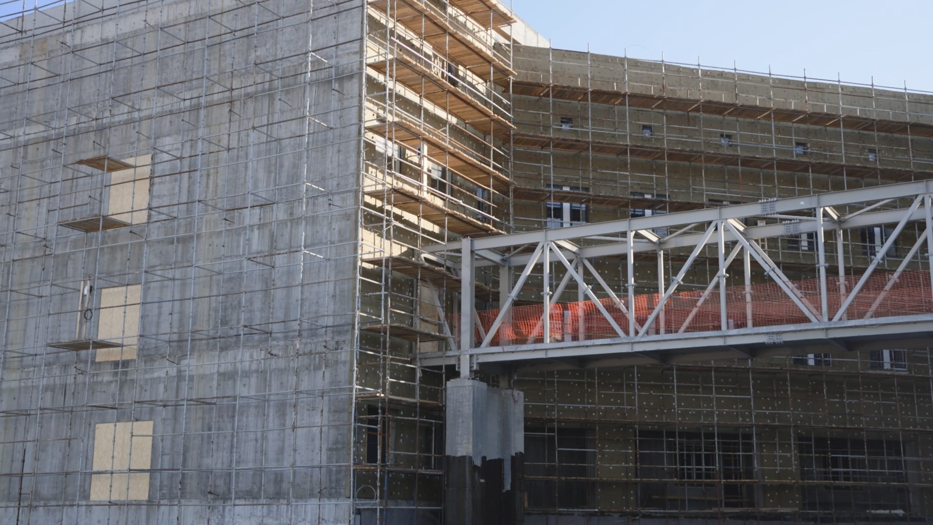 На Камчатке строители завершают отделку фасада краевой больницы, в здания подано тепло, подведены необходимые коммуникации, идет закупка и завоз медицинского оборудования. На сегодня это самый крупный объект в регионе, завершение строительства намечено на конец года.