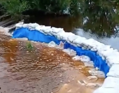 Из-за обильных осадков в Дальнереченске отмечается подъем воды. Из подручных материалов – мешков с песком и шин сооружение для защиты от стихи нарастили, но оно не выдержало.