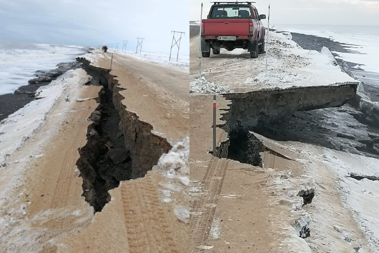 Жители камчатского села оказались в транспортной блокаде из-за размытой морем дороги